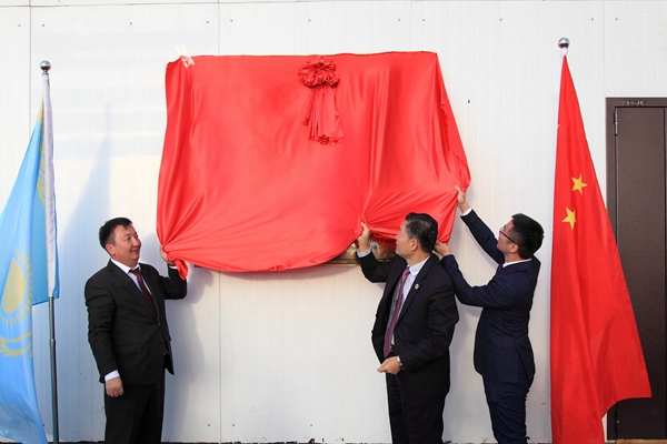 9月10日下午,李兴旺率代表团实地考察了西安爱菊粮油工业集团公司位于北哈萨克斯坦州的小麦收贮基地和油脂加工基地,并与北哈州国立大学、爱菊粮油加工集团公司负责人共同为三方合作共建的“丝绸之路农业教育科技创新联盟海外人才培养基地”和“粮油产业(北哈州)科技创新基地”揭牌。西安爱菊粮油工业集团公司是西北地区著名的大型粮油生产企业,目前在北哈州已建立了年均可收贮与加工10万公顷小麦和油料的基地,是中国目前在哈投资额最大、社会声誉最好的农业企业。2017年,爱菊粮油工业集团公司与我校签署了科技合作协议,就联合在哈开展粮油作物科技创新、示范推广和人才培养建立了紧密的合作关系。
